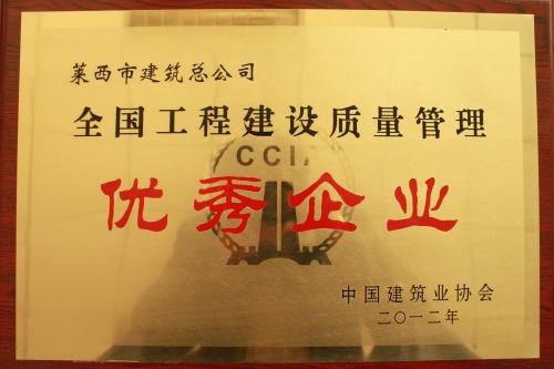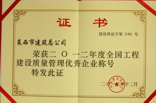 我公司榮獲2012年度全國工程建設(shè)質(zhì)量管理優(yōu)秀企業(yè)