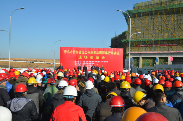 12月5日上午,青島市貫徹建設(shè)工程質(zhì)量治理兩年行動實施現(xiàn)場觀摩會在我公司王慎平項目部承建的德國企業(yè)中心項目召開。青島市建管局質(zhì)量監(jiān)督站總工程師崔浩、黃島區(qū)城市建設(shè)局副局長薛旻傳、我公司董事長孫涌同志分別進(jìn)行了經(jīng)驗介紹和總結(jié)發(fā)言,來自青島市四市七區(qū)的九百余家建設(shè)、施工、監(jiān)理單位,三千余名有關(guān)負(fù)責(zé)人對德國企業(yè)中心項目工程實體展示區(qū)、建設(shè)工程質(zhì)量治理兩年行動展板展示區(qū)、新技術(shù)及新材料應(yīng)用展示區(qū)、工藝樣板展示區(qū)、綠色施工展示區(qū)等分別進(jìn)行了觀摩。參會人員對德國企業(yè)中心項目工程質(zhì)量、常見質(zhì)量問題的治理、樣板領(lǐng)路的作法、綠色施工等給予了高度評價。