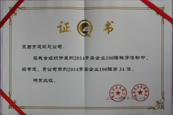 我公司名列青島企業(yè)100強(qiáng)第34位