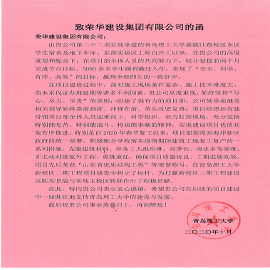 青島理工大學(xué)一行為集團(tuán)公司送來錦旗及表揚(yáng)信