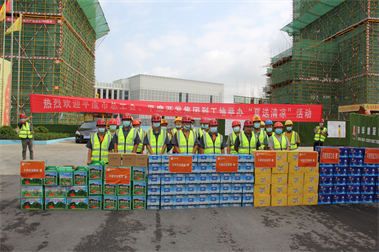 夏日送清涼,關(guān)懷潤人心。2021年8月6日,平度市總工會聯(lián)合平度市城市開發(fā)集團有限公司等一行“夏送清涼”車隊來到我公司施工的“平度新舊動能轉(zhuǎn)換產(chǎn)業(yè)園”項目部,看望慰問奮戰(zhàn)在施工一線的建筑工人,在炎炎夏日給他們送去清涼和關(guān)懷。項目部經(jīng)理李令震對平度市總工會及平度市城市開發(fā)集團一行領(lǐng)導(dǎo)的到來表示歡迎和感謝。 慰問現(xiàn)場,青島市總工會及平度市城市開發(fā)集團給工人送來了數(shù)十箱純凈水、西瓜、飲料等防暑降溫食用品。平度市總工會代表人員親切叮囑大家在夏日工作中一定要注意防暑,牢記高溫季節(jié)施工安全注意事項,合理安排作息時間,注重勞逸結(jié)合,并要求項目部要著力改善高溫一線作業(yè)職工的生產(chǎn)、生活環(huán)境,要有預(yù)防和控制高溫中暑的措施,防止高溫作業(yè)引發(fā)的各類事故,切實保障廣大職工的生命安全和身體健康,讓職工安全度夏、清涼度夏。 項目部經(jīng)理李令震說:感謝平度市總工會及平度市城市開發(fā)集團領(lǐng)導(dǎo)能夠想著我們、關(guān)懷我們,我們心里很感動,我們將以更好的狀態(tài)戰(zhàn)高溫、斗酷暑,發(fā)揚集團公司“一個家庭、一所學(xué)校、一支軍隊”的團隊精神,立足崗位做好本職工作,在確保安全生產(chǎn)的前提下,保質(zhì)保量按期完成建設(shè)任務(wù),為建設(shè)美麗幸福平度做出我們應(yīng)有的貢獻。