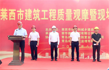 吳法先副市長對榮華建設集團作為龍頭企業(yè)在建筑領域的引領作用以及工程管理、綠色施工、科技創(chuàng)新等方面所取得的成就給予了充分肯定。通過現場觀摩,對該工程的工程質量、科技化程度、智能化水平給予了高度稱贊??偨Y會上吳市長強調,工程質量直接決定著百姓的幸福指數,希望能通過此次觀摩,各方加強學習交流,提高認識,消除質量通病,將整個萊西市的建筑工程質量提升到一個新層次。