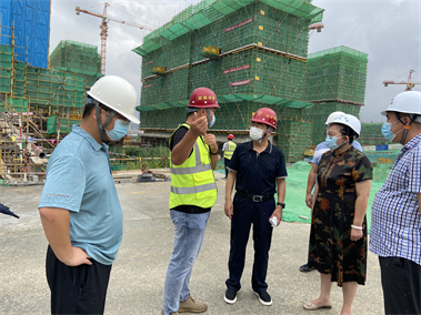 2021年8月5日上午,煙臺(tái)市住建局副局長(zhǎng)林濤、芝罘區(qū)住建局副局長(zhǎng)孫宏偉、建設(shè)服務(wù)中心主任姜玉振及各科室科長(zhǎng)來到三公司王慎平項(xiàng)目部施工的龍湖春江天璽工程,對(duì)該項(xiàng)目疫情防控、安全生產(chǎn)及揚(yáng)塵治理等情況進(jìn)行檢查和指導(dǎo)。