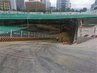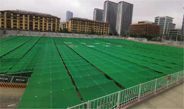 青島國際院士港設(shè)計研發(fā)中心項目自開工以來,項目部認(rèn)真貫徹建筑工地?fù)P塵治理有關(guān)文件精神,嚴(yán)格落實省、市建筑工地?fù)P塵治理措施和要求,結(jié)合工程周邊環(huán)境復(fù)雜、作業(yè)周期長、易揚塵、工序多等特點,大膽進(jìn)行技術(shù)研發(fā)創(chuàng)新,成功采用了大跨度全自動“天幕”系統(tǒng)。該項目采用的“天幕”系統(tǒng)兼具防塵、降噪、遮陽、降溫等功能,由支撐鋼結(jié)構(gòu)系統(tǒng)、傳動系統(tǒng)、開合系統(tǒng)、陣列噴淋系統(tǒng)、LED照明系統(tǒng)、動力及照明電力系統(tǒng)等六個子系統(tǒng)構(gòu)成,采取遠(yuǎn)程遙控控制,可實現(xiàn)展開或收縮。“天幕”將整個基坑完全覆蓋,確保全部施工作業(yè)均在“天幕”下進(jìn)行,有效實現(xiàn)了對基坑范圍內(nèi)土方全覆蓋,最大限度地降低了土方作業(yè)期間揚塵污染問題,有效降低了細(xì)顆粒物濃度,全面提高了揚塵治理精細(xì)化管理水平。