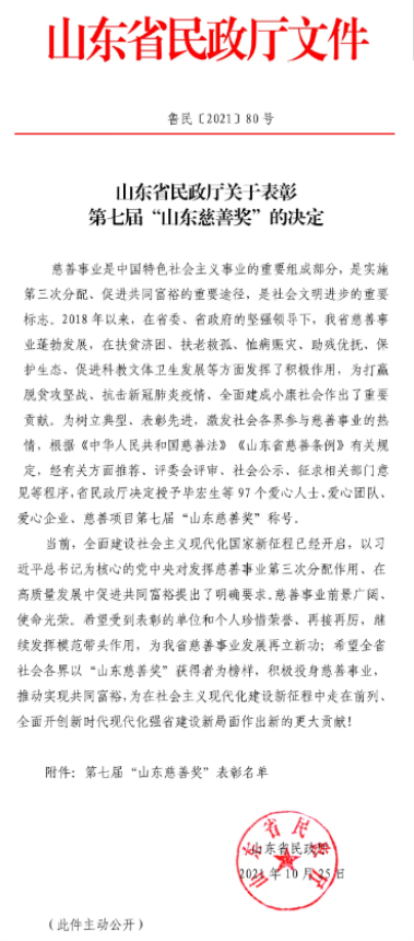 喜訊!董事長孫涌同志被中華慈善總會授予“愛心企業(yè)家”集團公司榮獲第七屆“山東慈善獎”