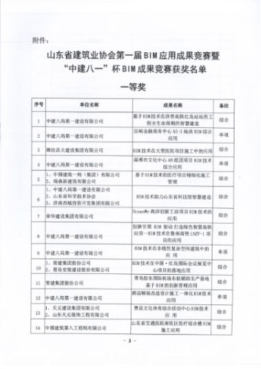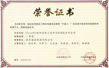 集團(tuán)榮獲“山東省建筑業(yè)協(xié)會(huì)第一屆BIM應(yīng)用成果競(jìng)賽”一等獎(jiǎng)